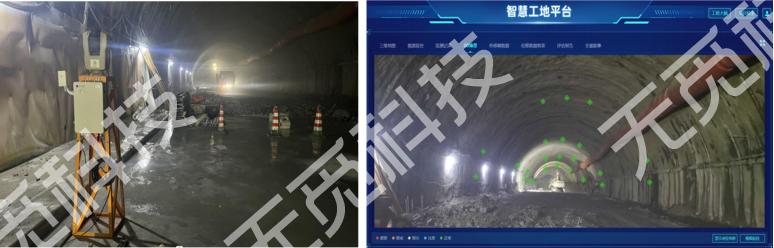 为实现实时监测、实时预警、实时反馈,采用数字激光AI观测仪及智慧平台,对超大跨隧道地表下沉、周边位移、拱顶及拱脚下沉进行远程智能化测量、监控、预警和管理,且其具有的高清影像功能可以更直观的保存现场施工情况,同时采用人工监测验证复核,确保监测数据精确、可控,及时掌握隧道开挖变形及危险源发展趋势,有效防止地质灾害和工程事故发生。