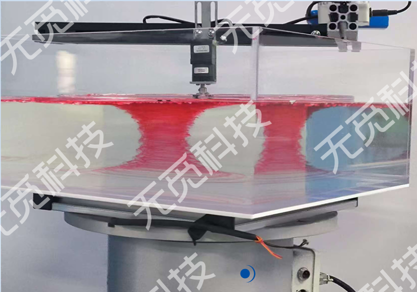 - 转台主体:台面直径0.4m,实验水槽旋转台面高度0.3m,旋转直径0.5m,系统总高1m.